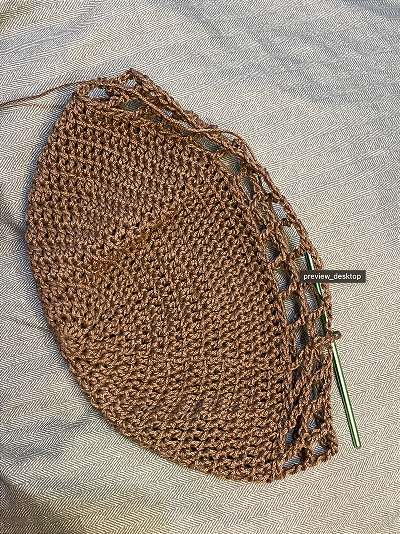 I decided to work adjustable handles that are long enough to be worn crossbody but can also be shortened for one-shoulder use. I also knew I wanted a nice round armhole and tapered tails, so I started with some deep decreases and also made the straps narrower towards the end.
