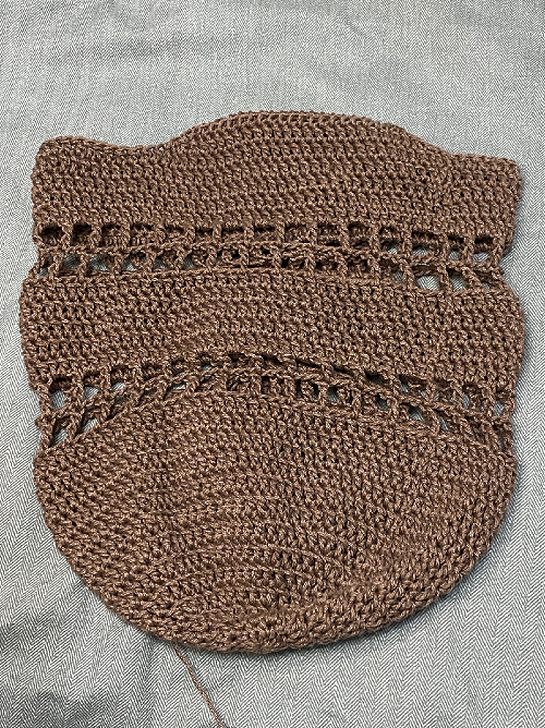 So, I worked 2 rounds of the mesh stitch and 5 rounds of double crochet twice to get the following.