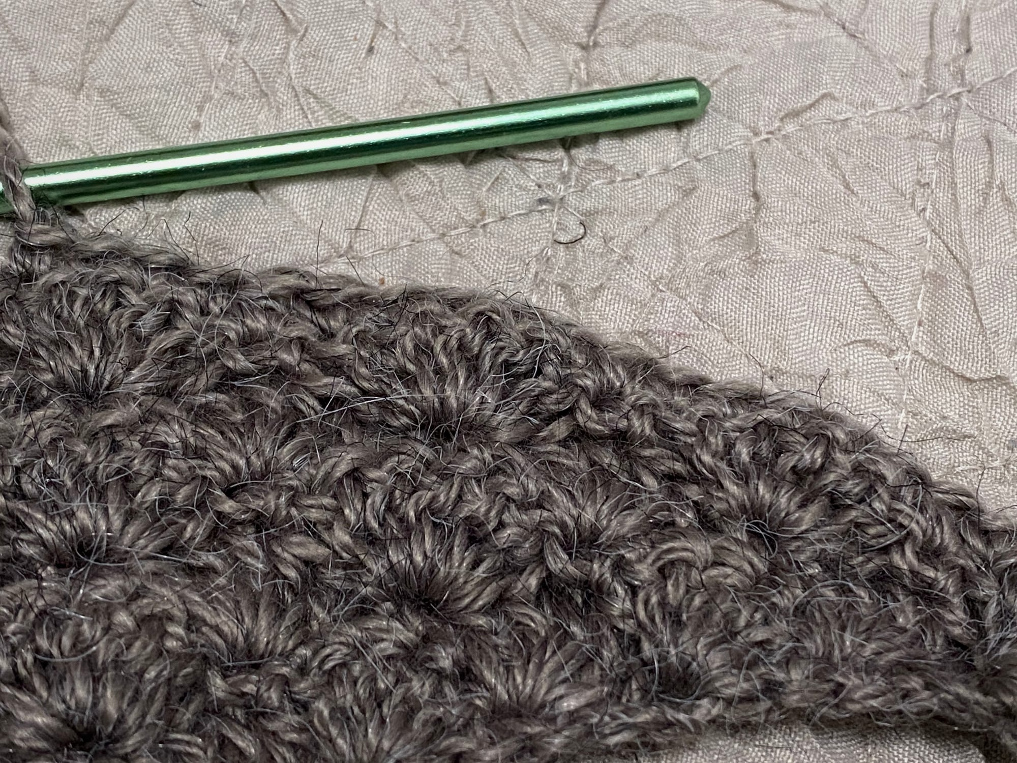 I've reached a point in the scarf where it may be nice to wrap up. I've completed 24 rows of this ever-increasing shell stitch and I'm quite happy with the length and width.