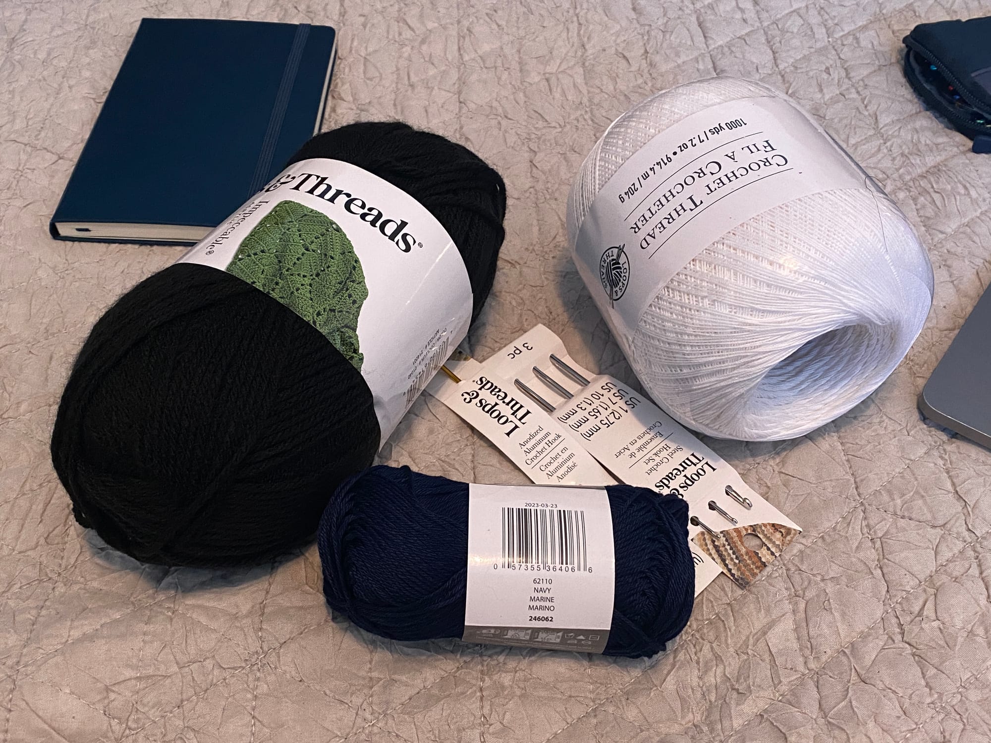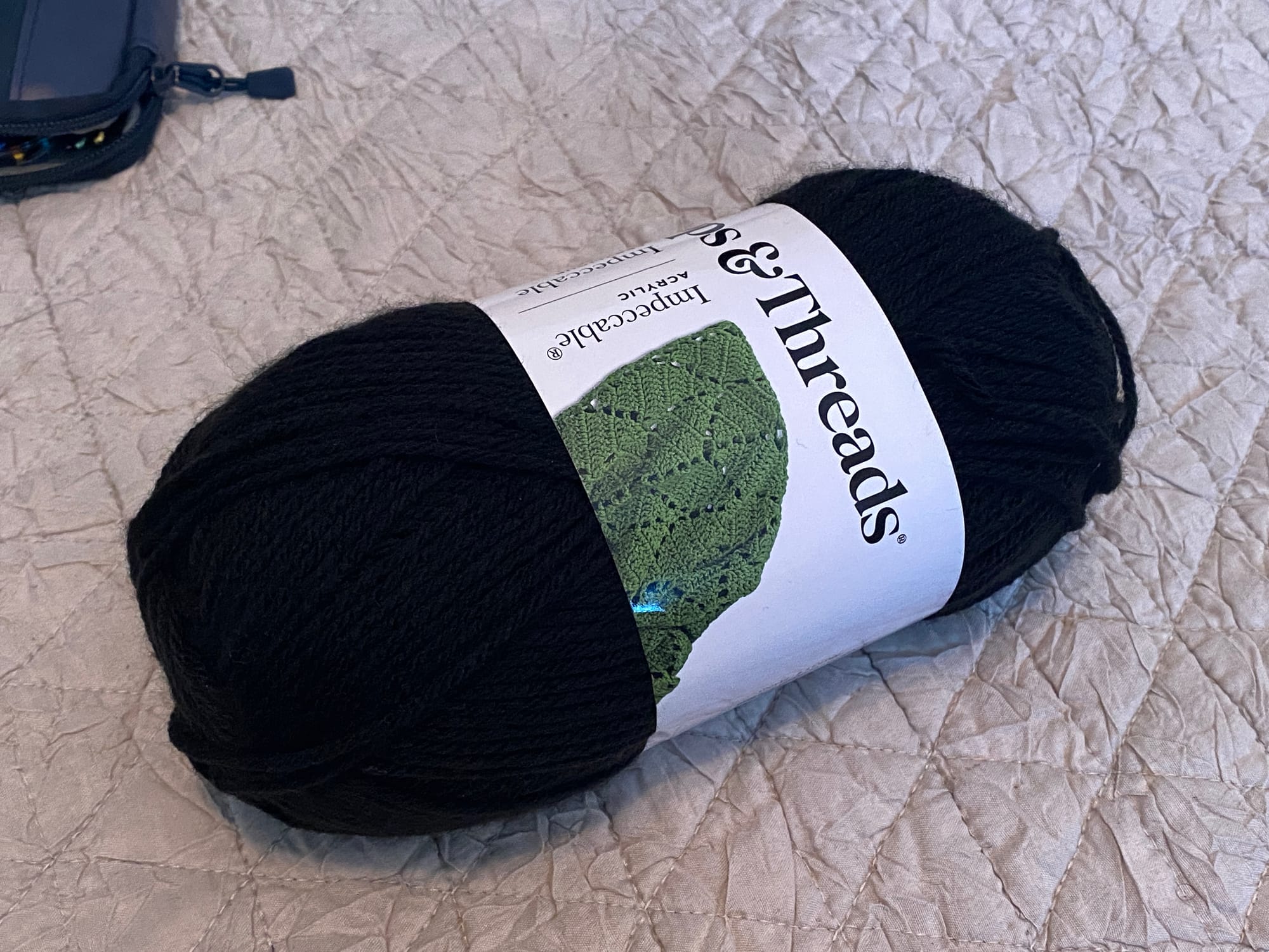 There's a beanie I've been in the middle of knitting for a few months. I'm holding two yarns together and the black was damaged and lost during travel. This is its replacement.
