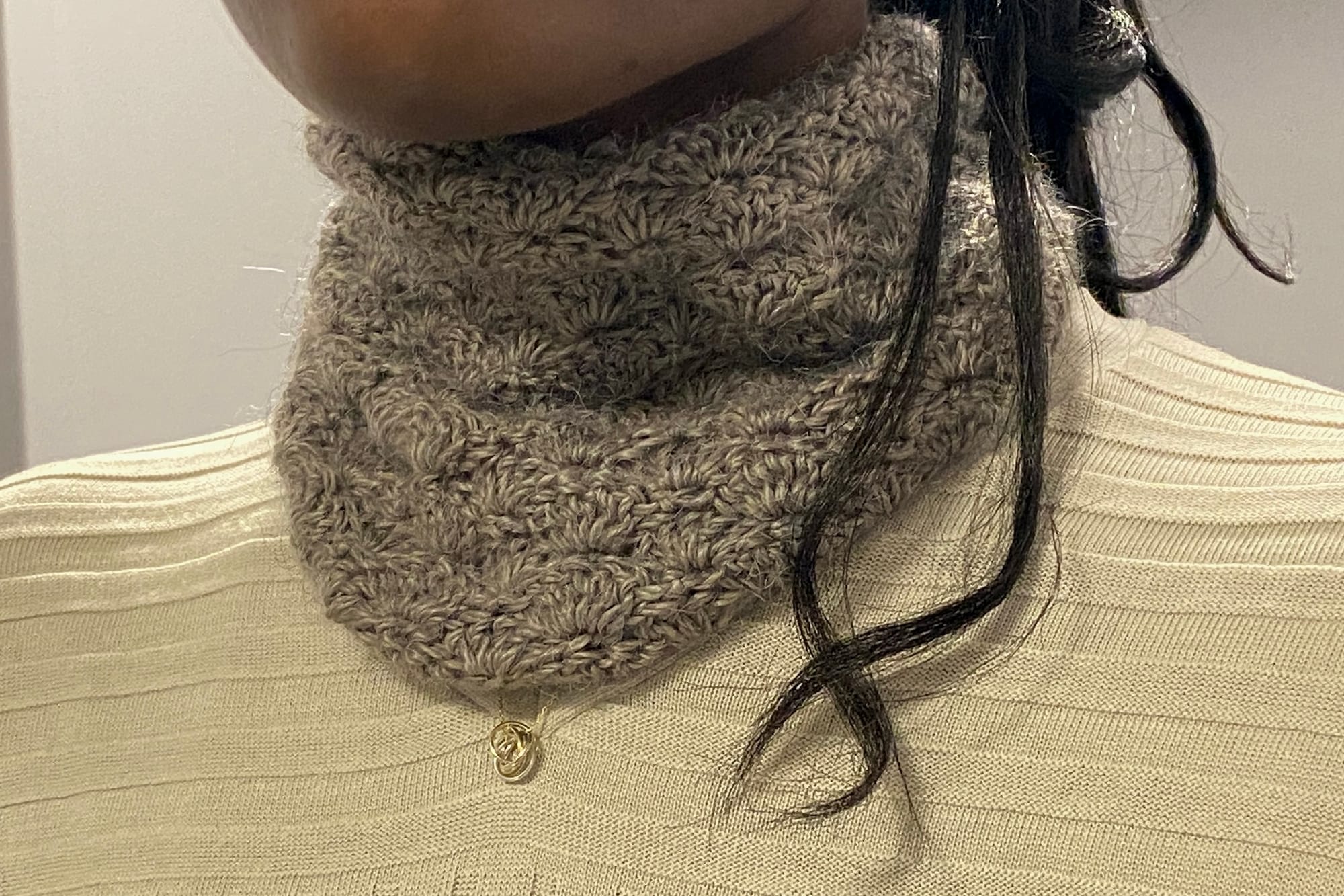 Row 5 | Chain 3 and turn. Work 5 dc into the first stitch. Skip 1 and sc into the next stitch. *Skip 2 and work 5 dc into the next stitch. Skip 2 and sc into the next stitch.* Repeat the asterisk section until two stitches remain. Skip 1 and work 5 dc into the last stitch.