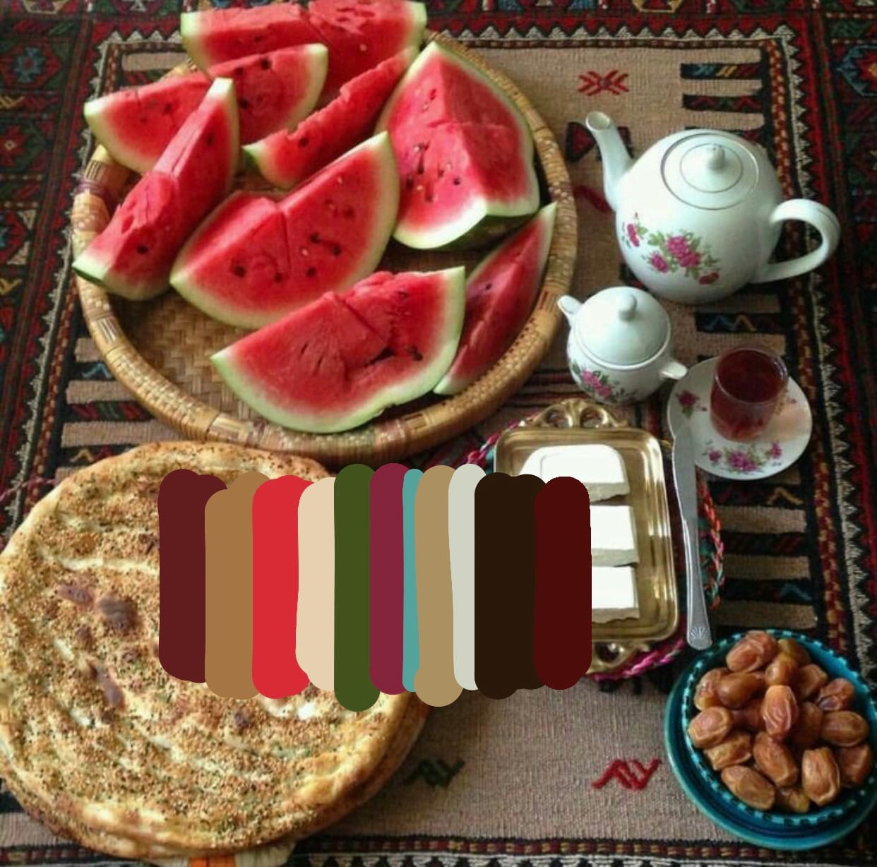 Textiles, walls, tiles, and landscapes can be referenced for colour combinations that are understated and subtly pleasing. If there is enough variation, food can be used this way as well.