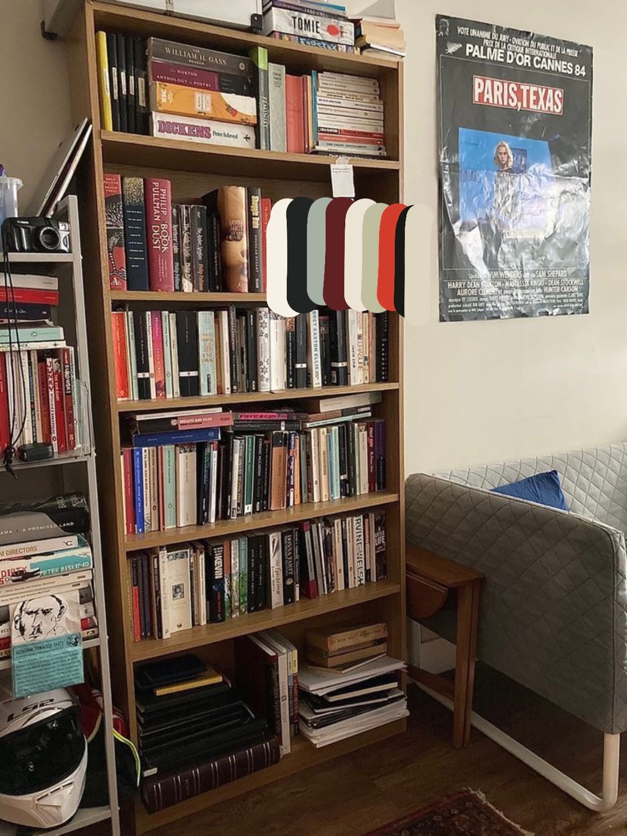 Again looking at colour, if a palette is reminiscent of a bookshelf, that might be a good direction to go in. This thought is similar to finding community spaces and cultural centers. I would avoid shelves with very intentional colour curation and arrangement as that defeats the purpose. The average library would be a good place to start if you want a varied palette that complements basics and neutrals without exclusively relying on black and white.
