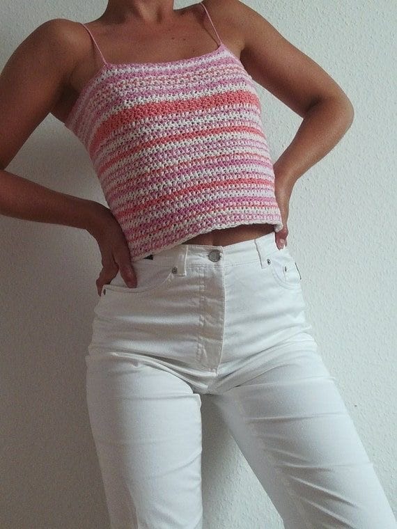 In tops, you are likely to make more wearable pieces if you start with wide-neckline camisoles, singlets, crewneck pullovers, and cardigans. Smooth fabrics with comfortable drapery or knit-look and ribbed stitching will give you items that are easy to style and blend with other clothing.